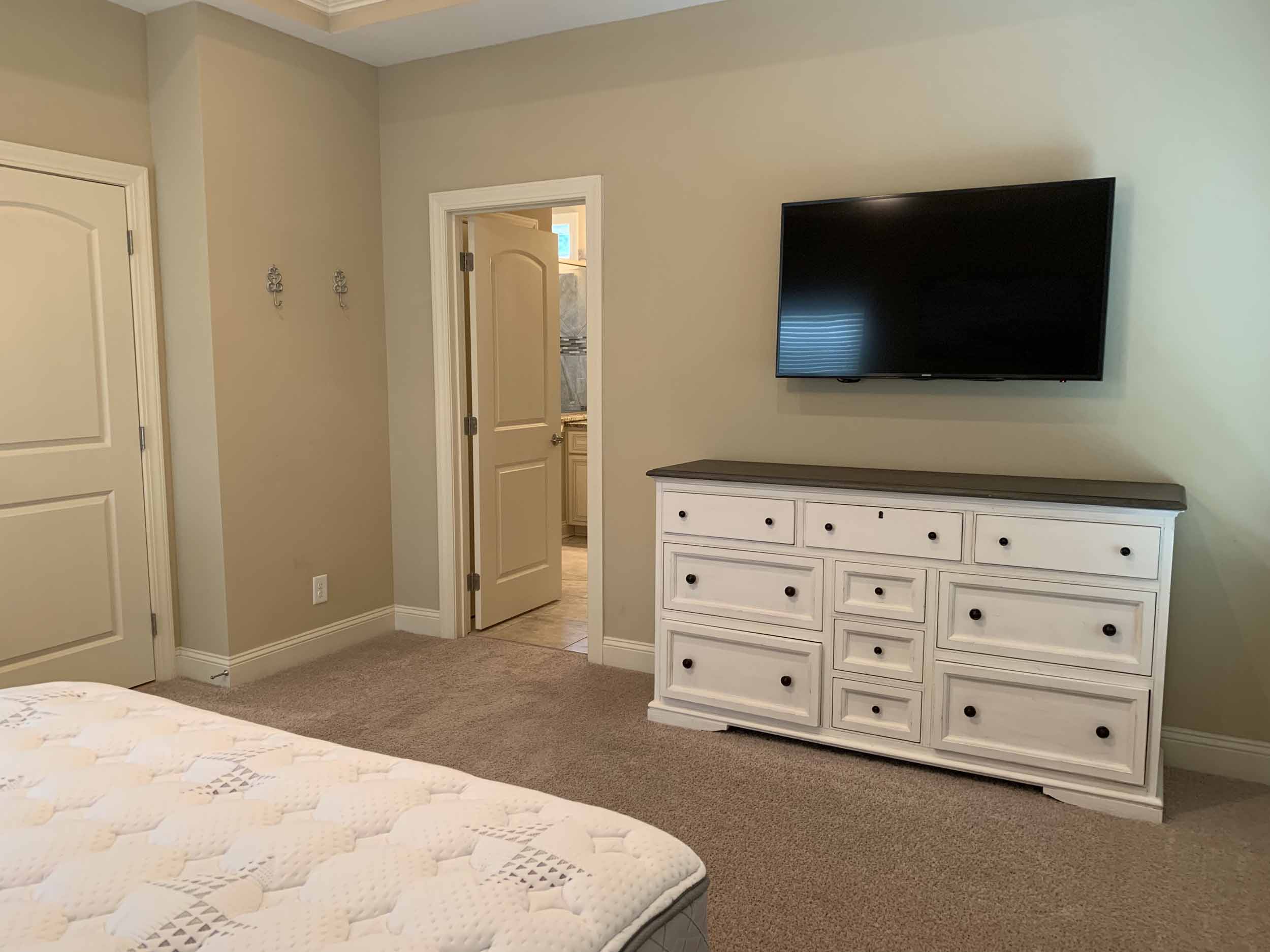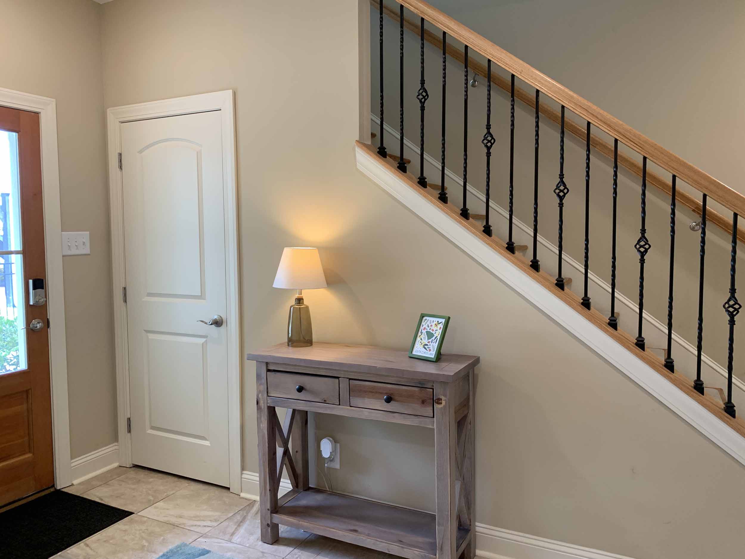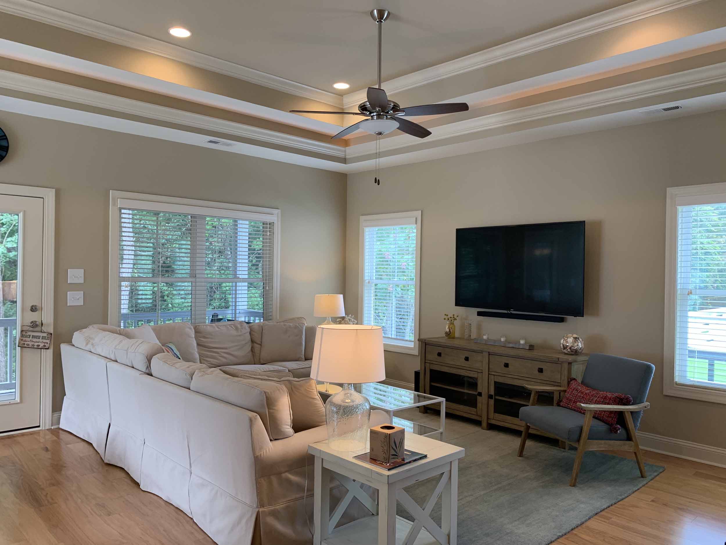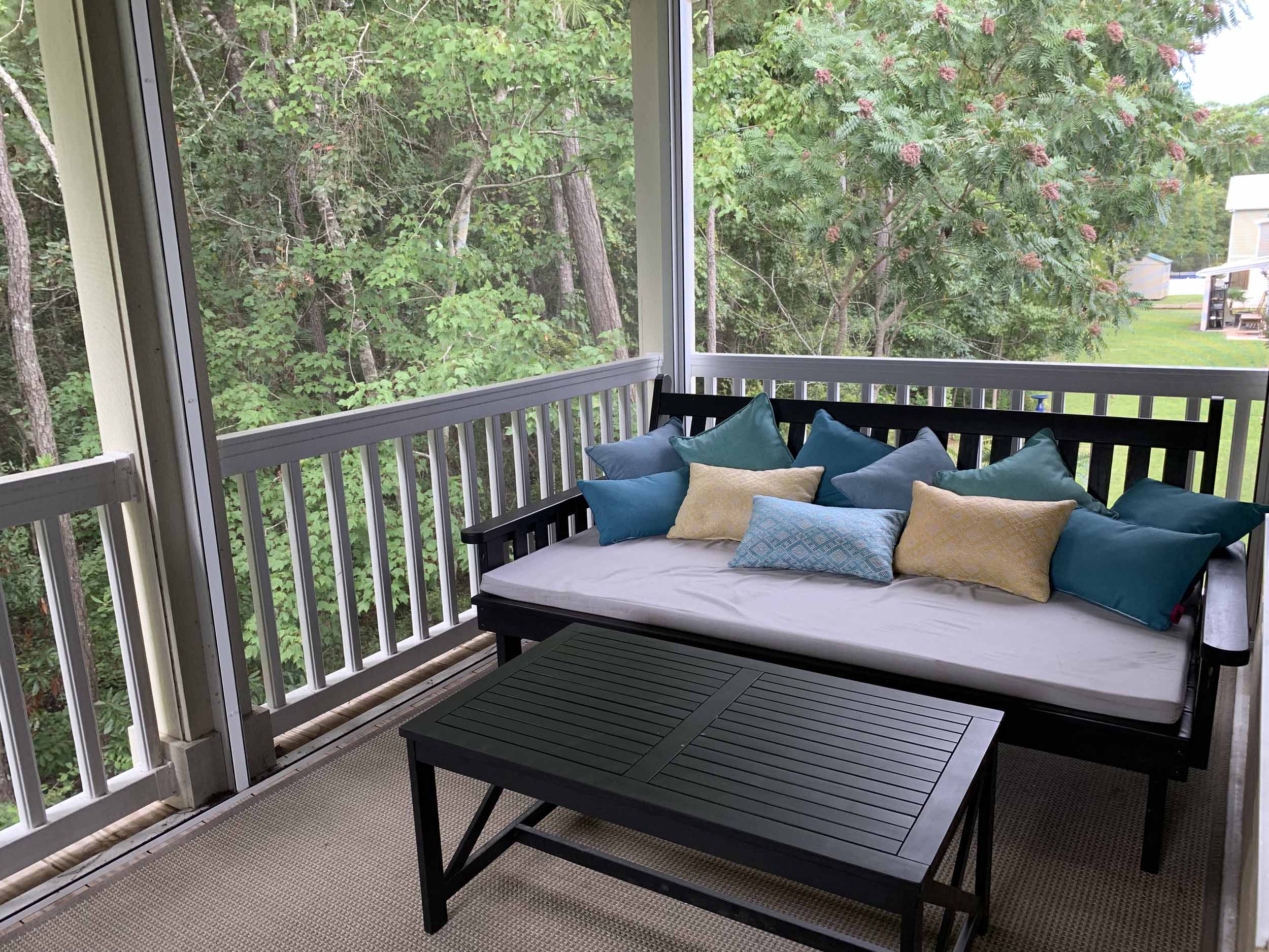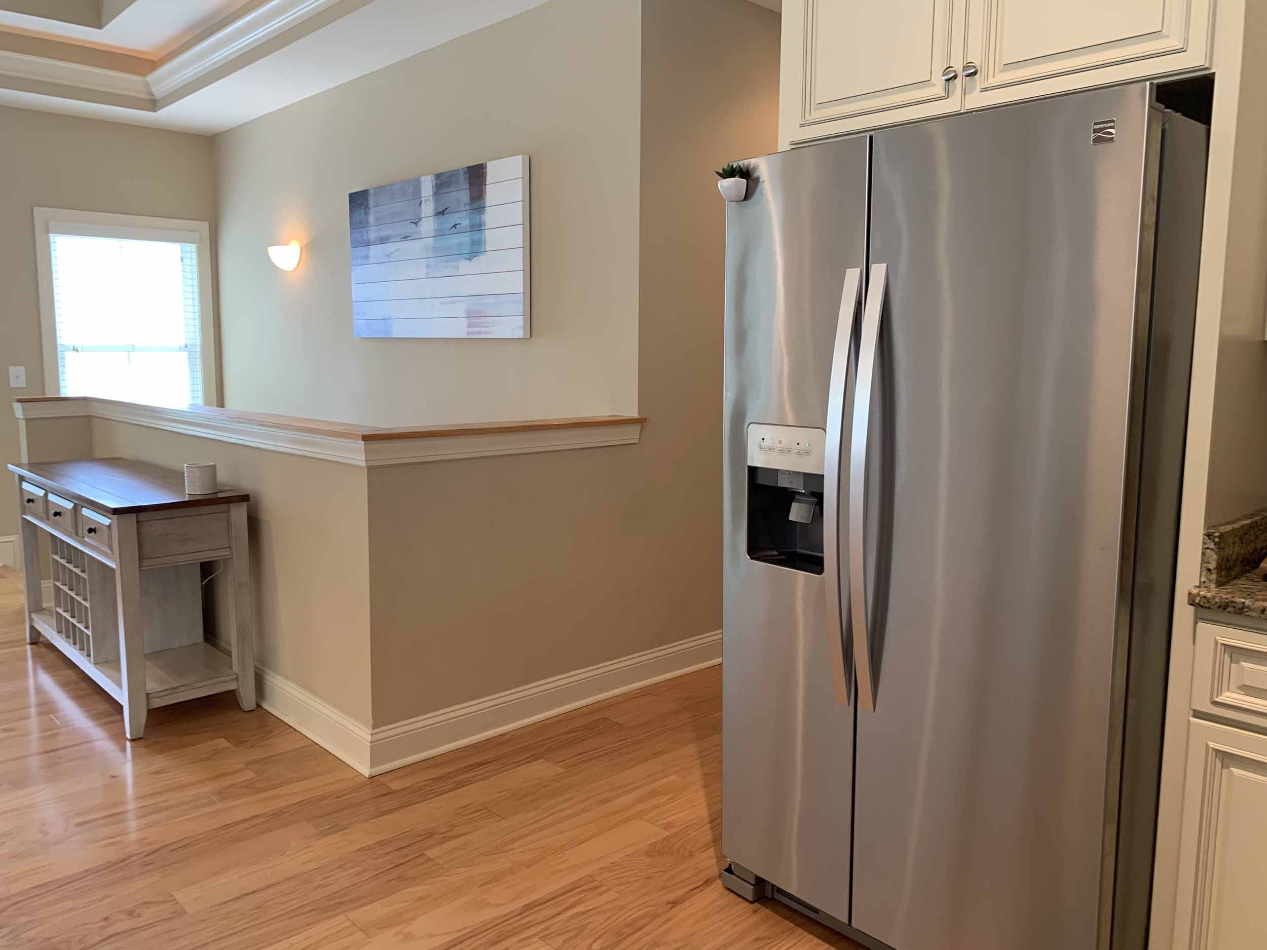 Pawleys Pointe - East of Ocean Hwy. in the heart of Pawleys Island. This home is so amazing, and beautifully furnished, too! Spacious floor plan. Lots of windows for natural light. Living, dining, kitchen, half-bath, master suite, screened porch and laundry room are on the main floor. Two bedrooms are on the lower level. Incredible cove ceiling with indirect and cove lighting in living area and master suite. Open plan living, dining and kitchen. Living area opens to screened porch and wooded view. Kitchen with granite countertops, stainless appliances, breakfast bar. The large master suite has a queen bed, TV, and the master bath has granite countertop, double sinks, walk-in shower and an extra large walk-in closet. Downstairs features a beautiful foyer, 2 bedrooms (each with queen bed) and a bathroom with a tub/shower combination. There is a two-car garage, and a covered back porch. Once you walk into this home, you'll want to live here!  Pawleys Pointe amenities include a swimming pool.