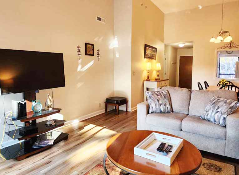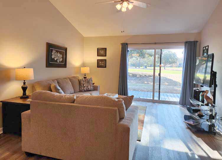 2 bed/ 2 bath condo with bonus room and screened porch overlooking the golf course in the gated community of The River Club. Pool on premises, plus access to the beach in Litchfield By The Sea. Fully furnished, pots, pans, etc. Bed sizes: 1 King, 2 Doubles. Flooring is a mix of Luxury Vinyl Plank, and carpet in the bedrooms. $2250 plus electric. No smoking.